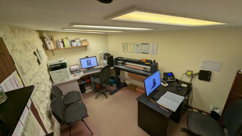 The stone-built, cottage-style building offers a separate office in which there are two computer stations, one predominantly for orders and administration, the other for designing products and creating visual representations of orders that can either be emailed to customers or printed out and taken away.